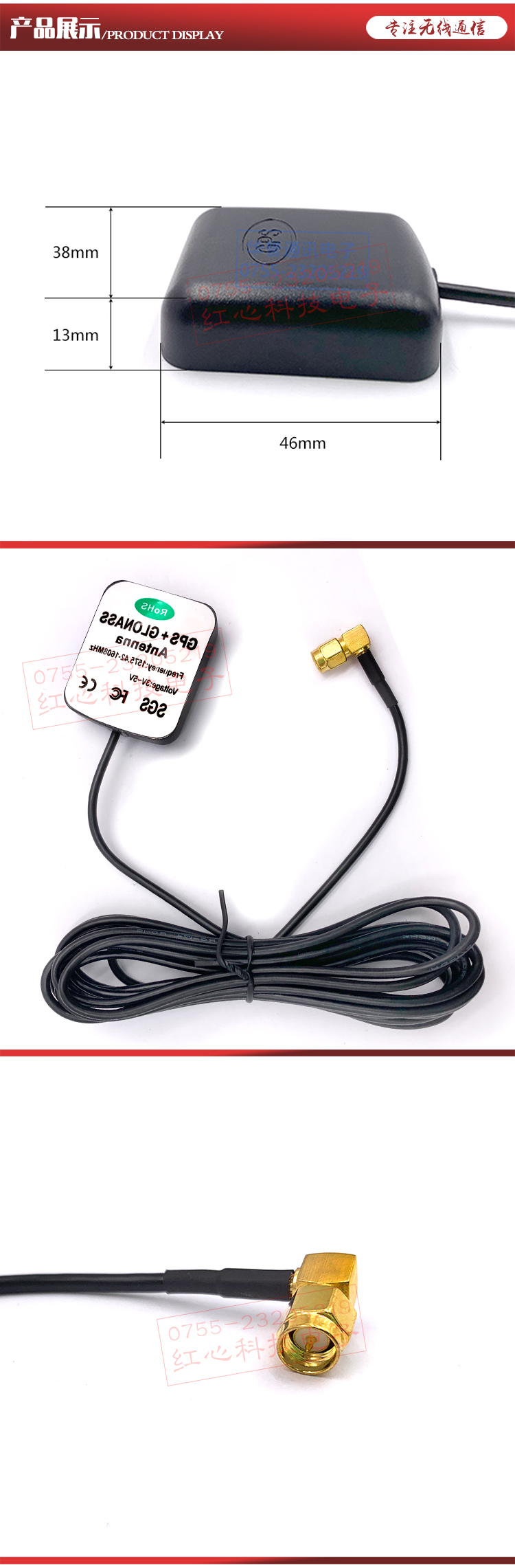 | 天線尺寸(Overal dimensions) | 46*38*13 | mm |