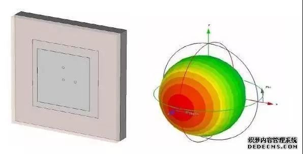 平面型的GPS天線,其輻射方向仿真來看,如圖,在劇烈晃動(dòng),藍(lán)色與紅色界限分明,信號(hào)幅度變化劇烈。